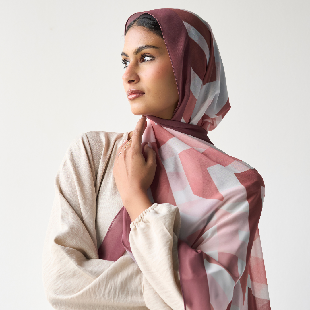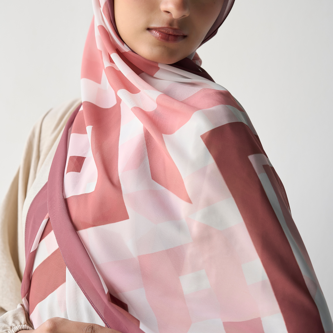 Stone Grid chiffon scarf, Frostline Chiffon, premium chiffon hijab, luxury printed chiffon scarf, geometric chiffon hijab